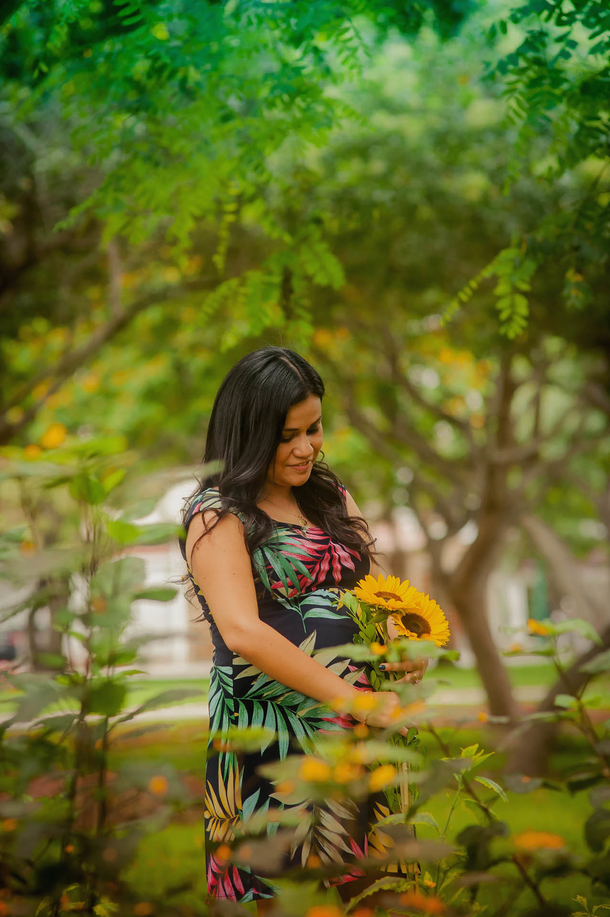 maternidad familia dulce espera girasoles embarazada futura mamá fotografía de familia